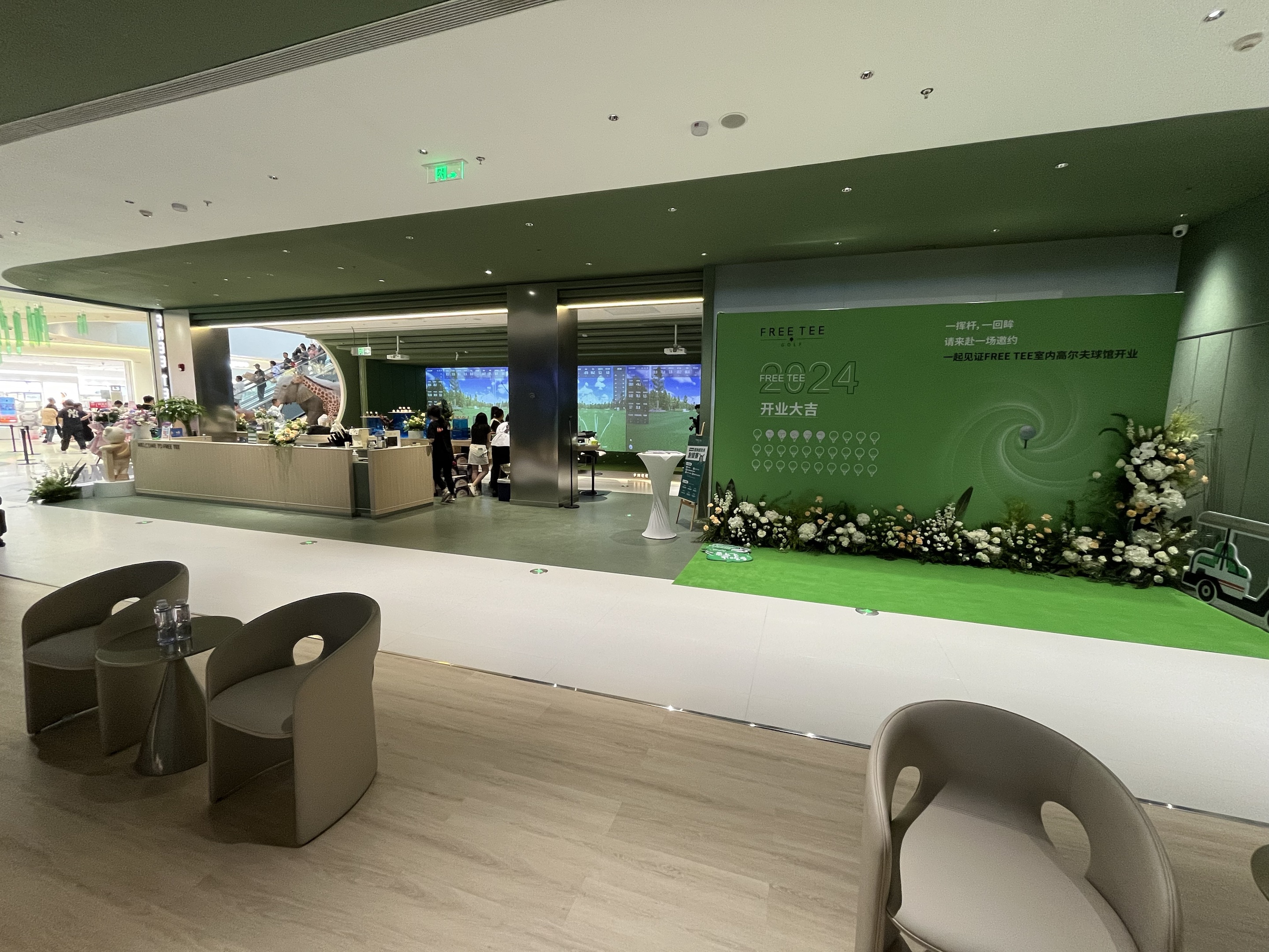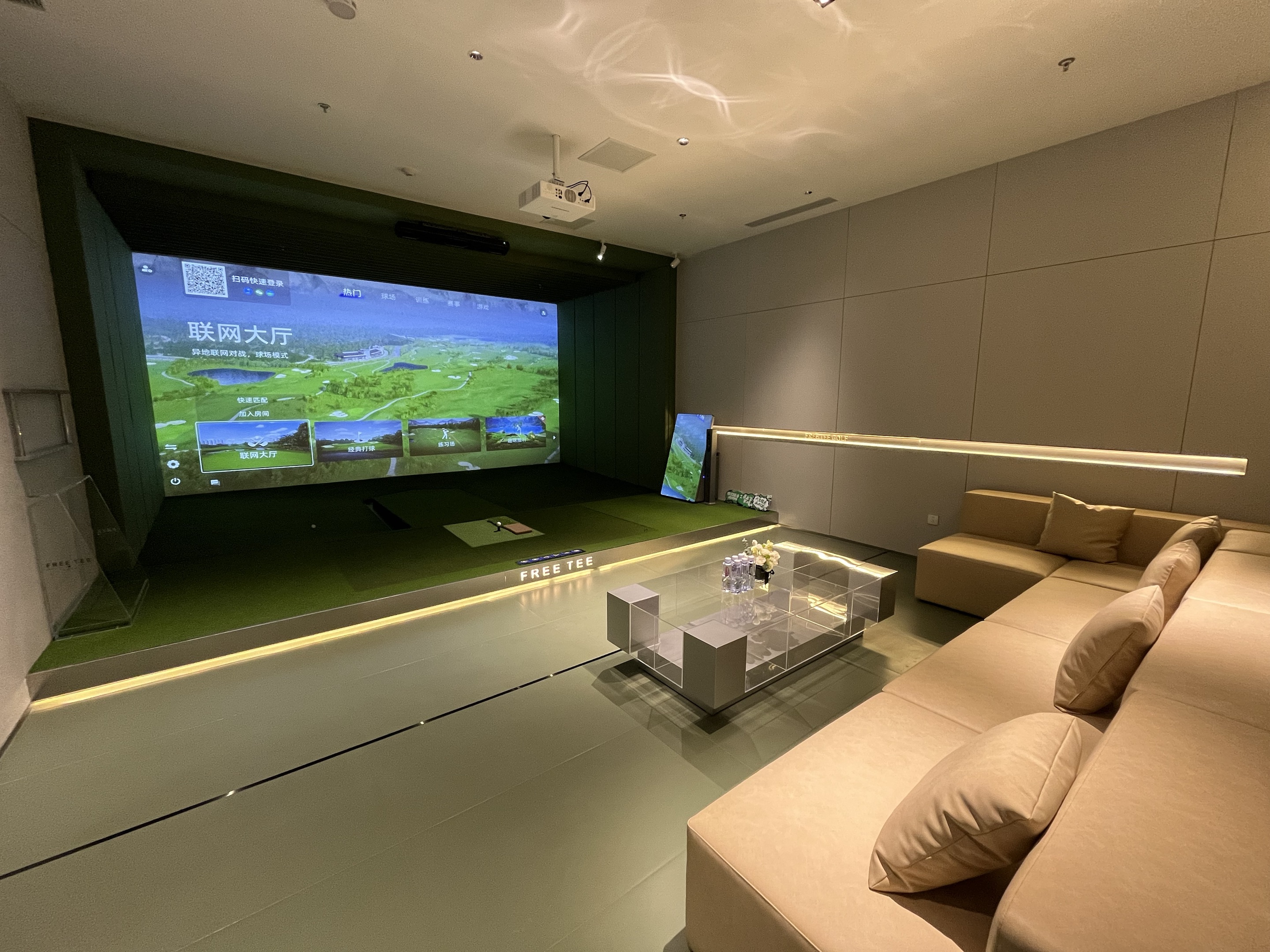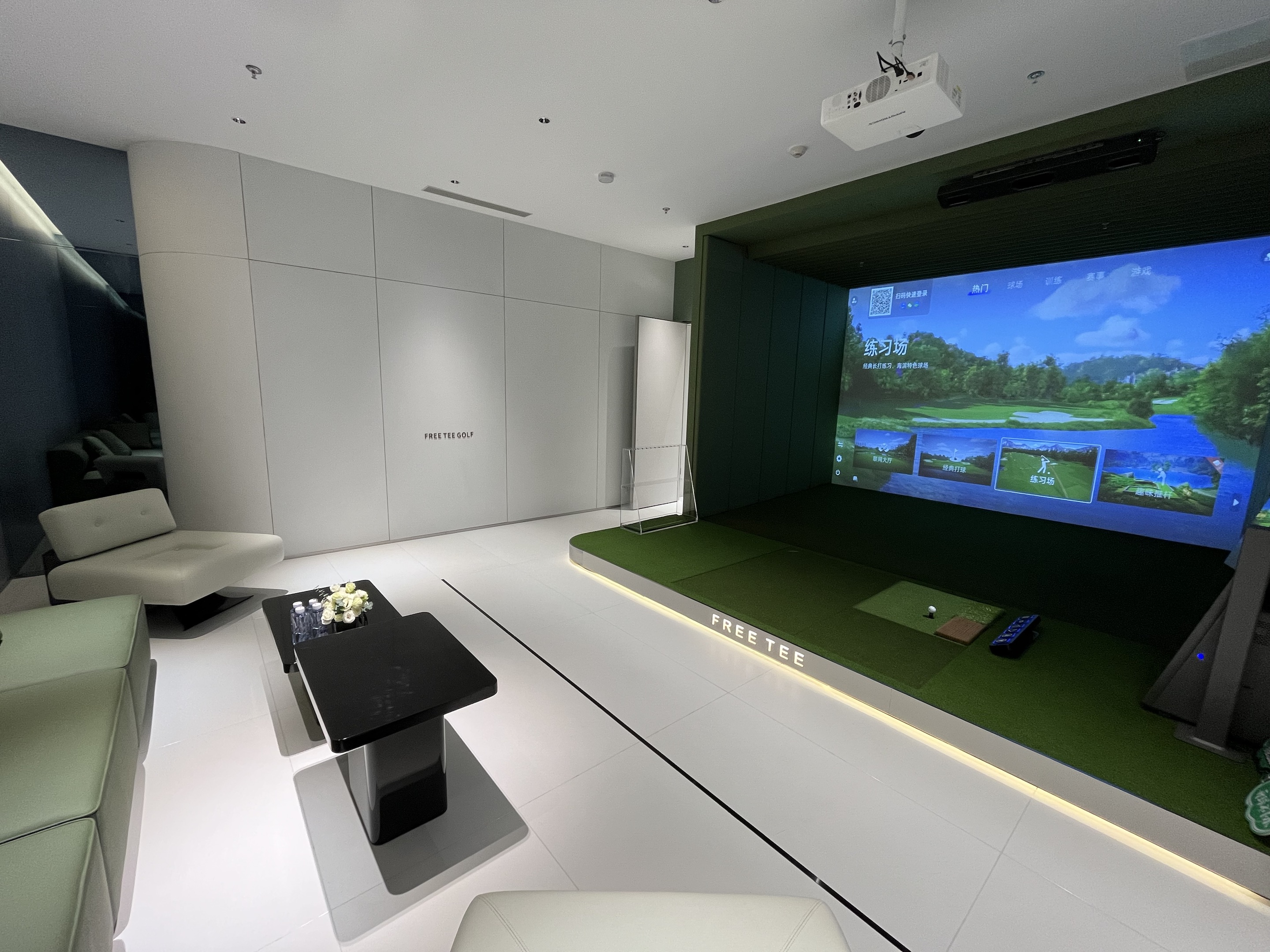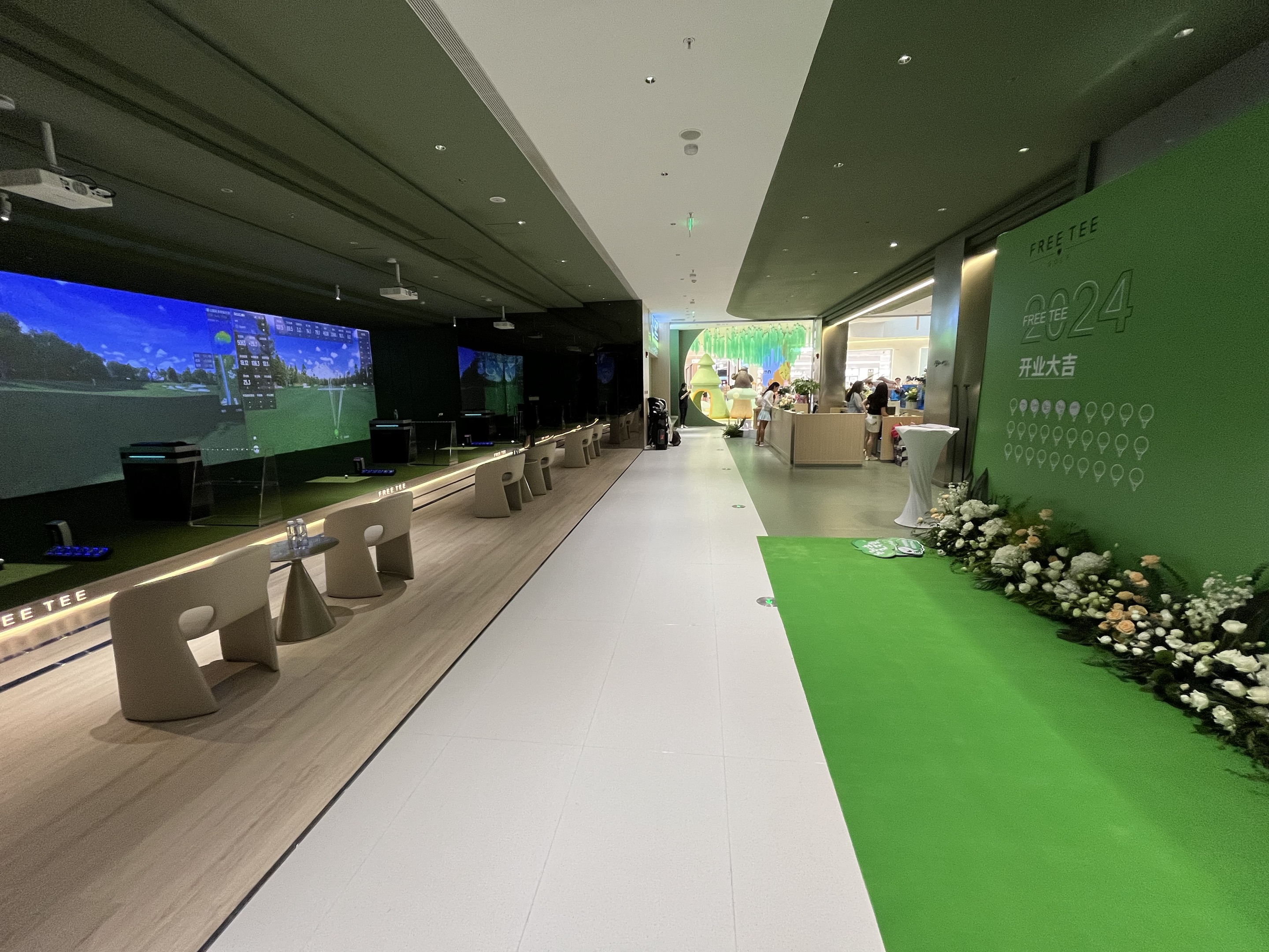 FREETEE荟聚店是上海的二店,坐落在上海荟聚商场的3楼,800平使用面积,配备了5个S95顶级包间和6个公共打位,全部是业内最尖端的衡泰信GOLFJOY系统,拥有1:1航拍的世界各地知名球场。