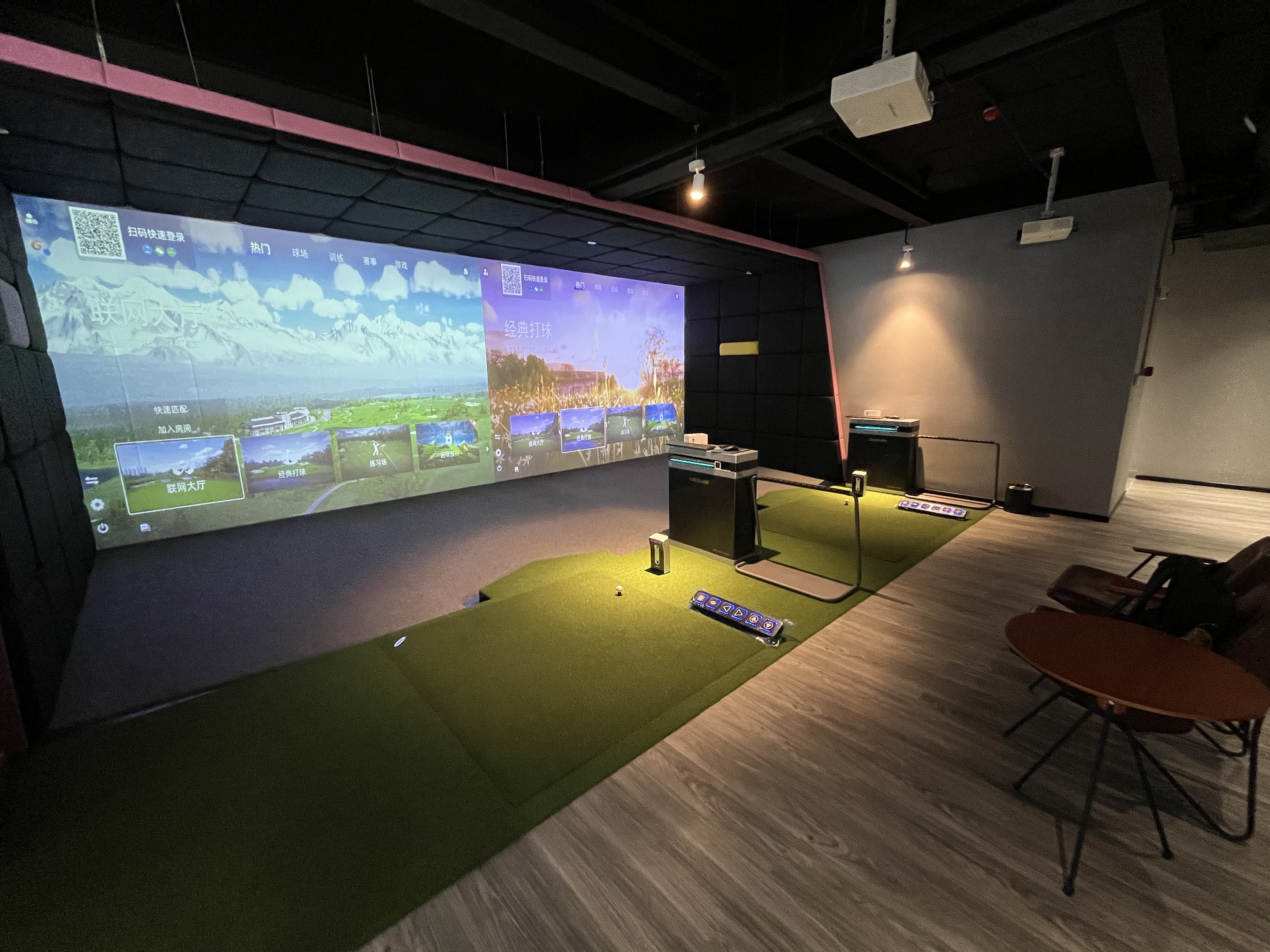 一楼配备2个联排打位,二楼配备4个vip包间,全部搭载衡泰信尖端golfjoy系统