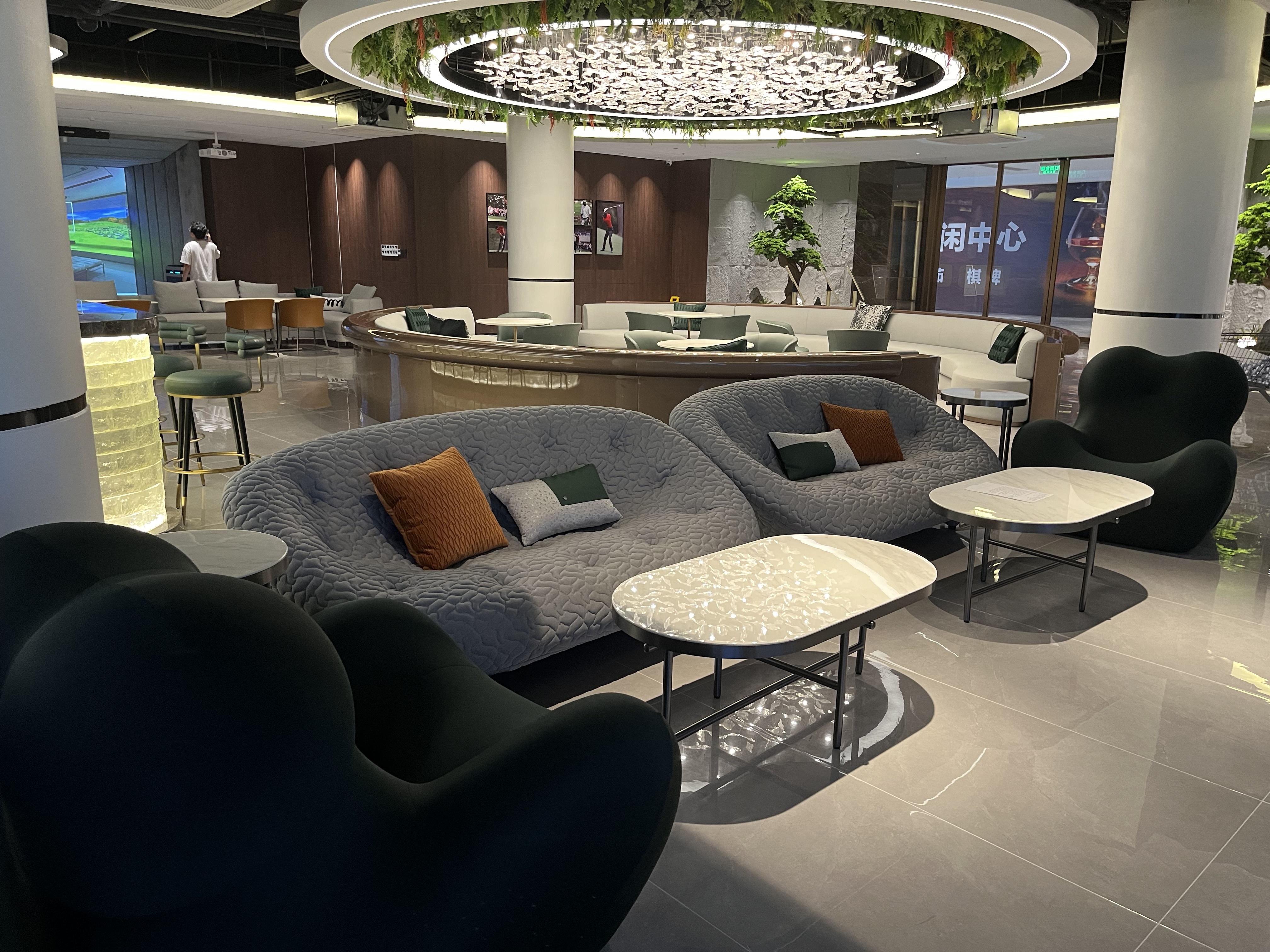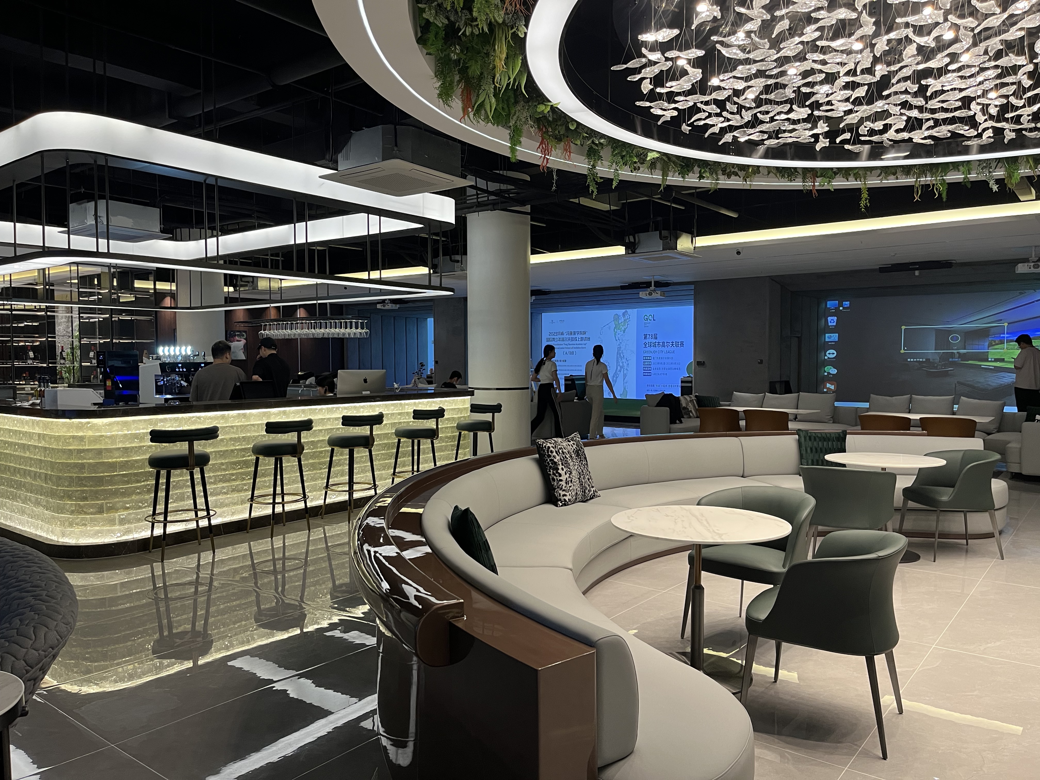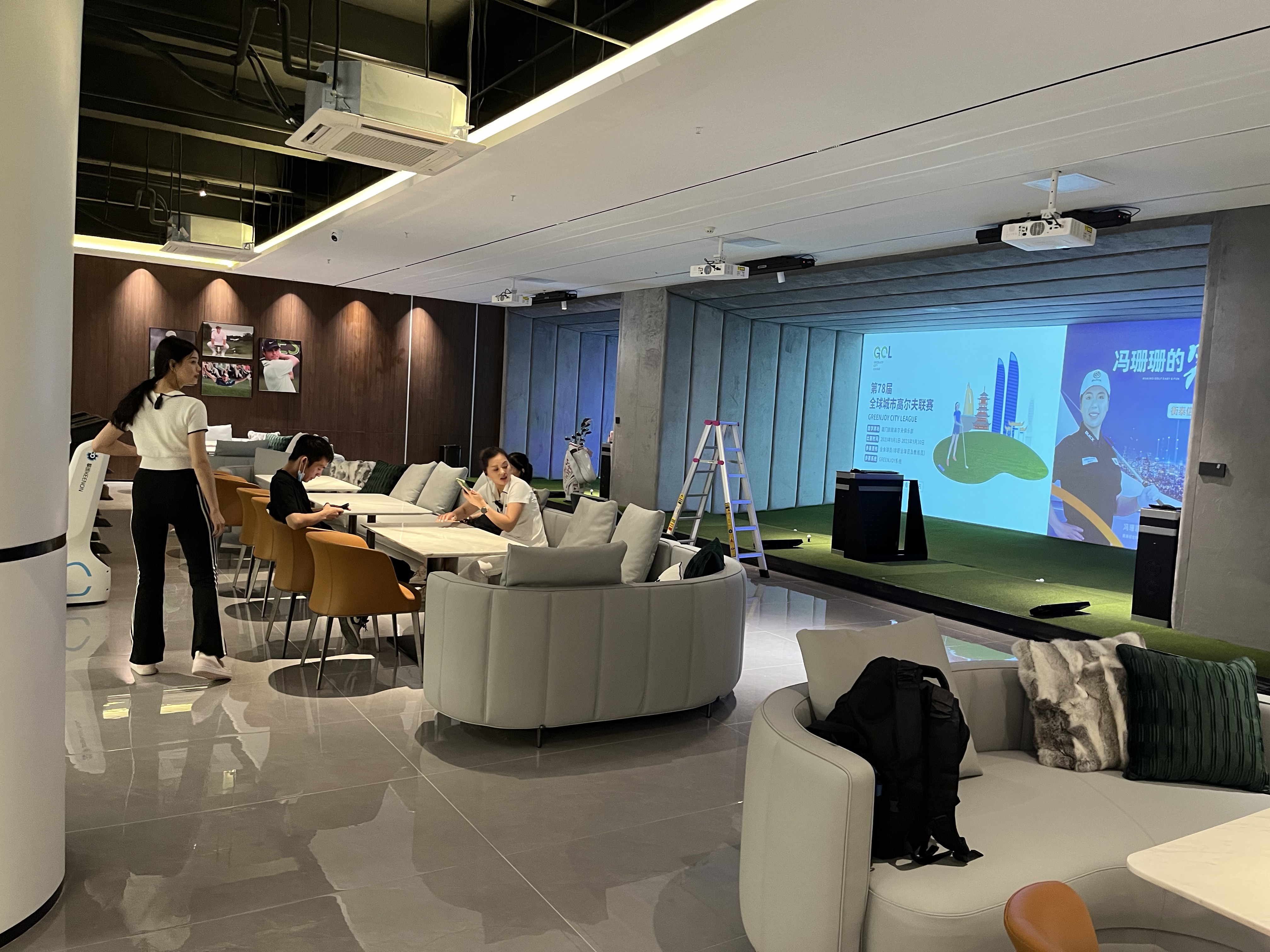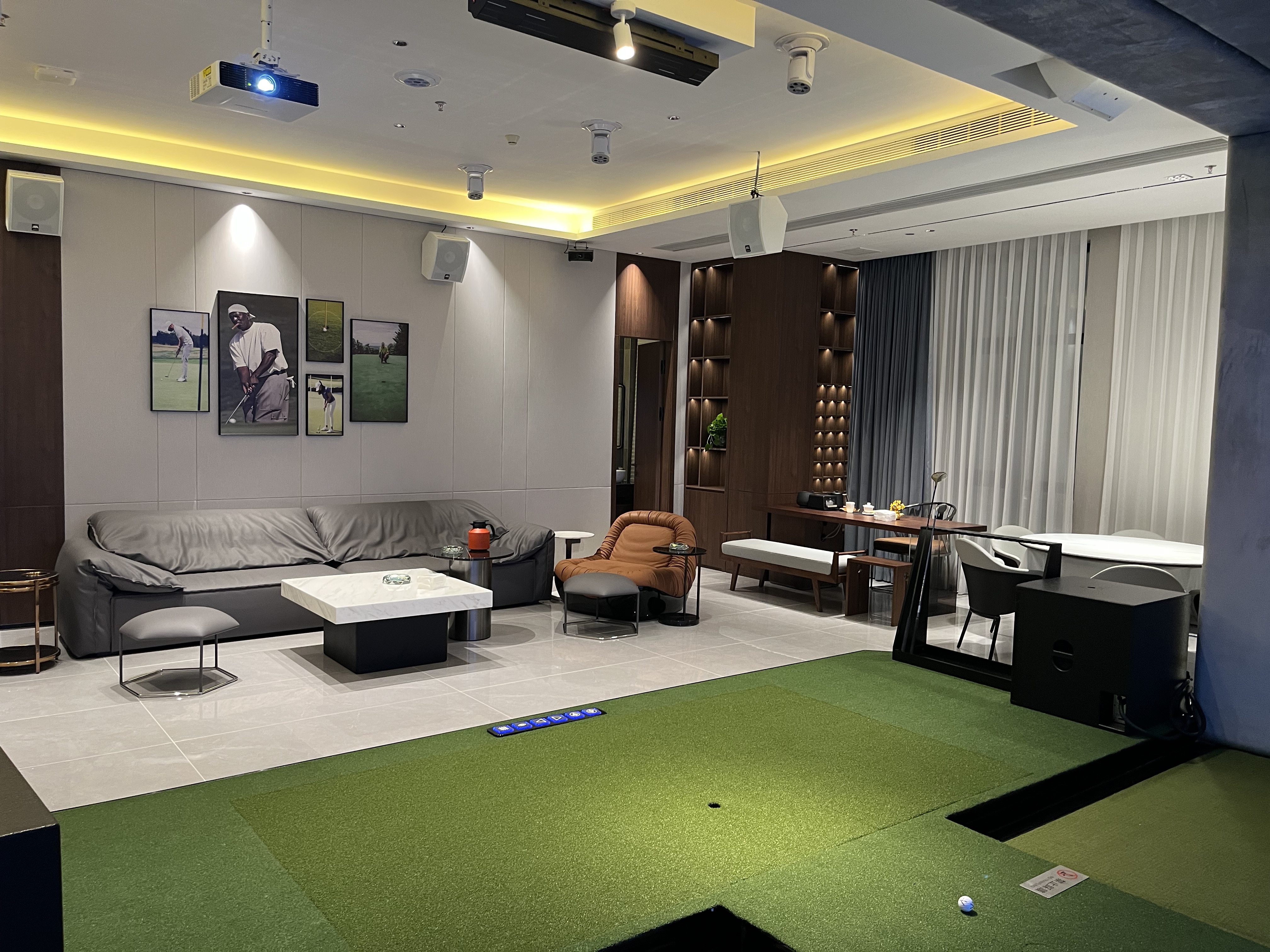 享来高尔夫位于东莞市厚街镇,是一家中高端运动休闲娱乐为主的高 尔夫俱乐部。占地近3000平方,其中包含:室内高尔夫、高尔夫装备、茶 艺文化、雪茄文化、餐饮服务等,吃、喝、玩,乐配套完善,给客户创造来 到享来可以玩上一整天的舒适环境。